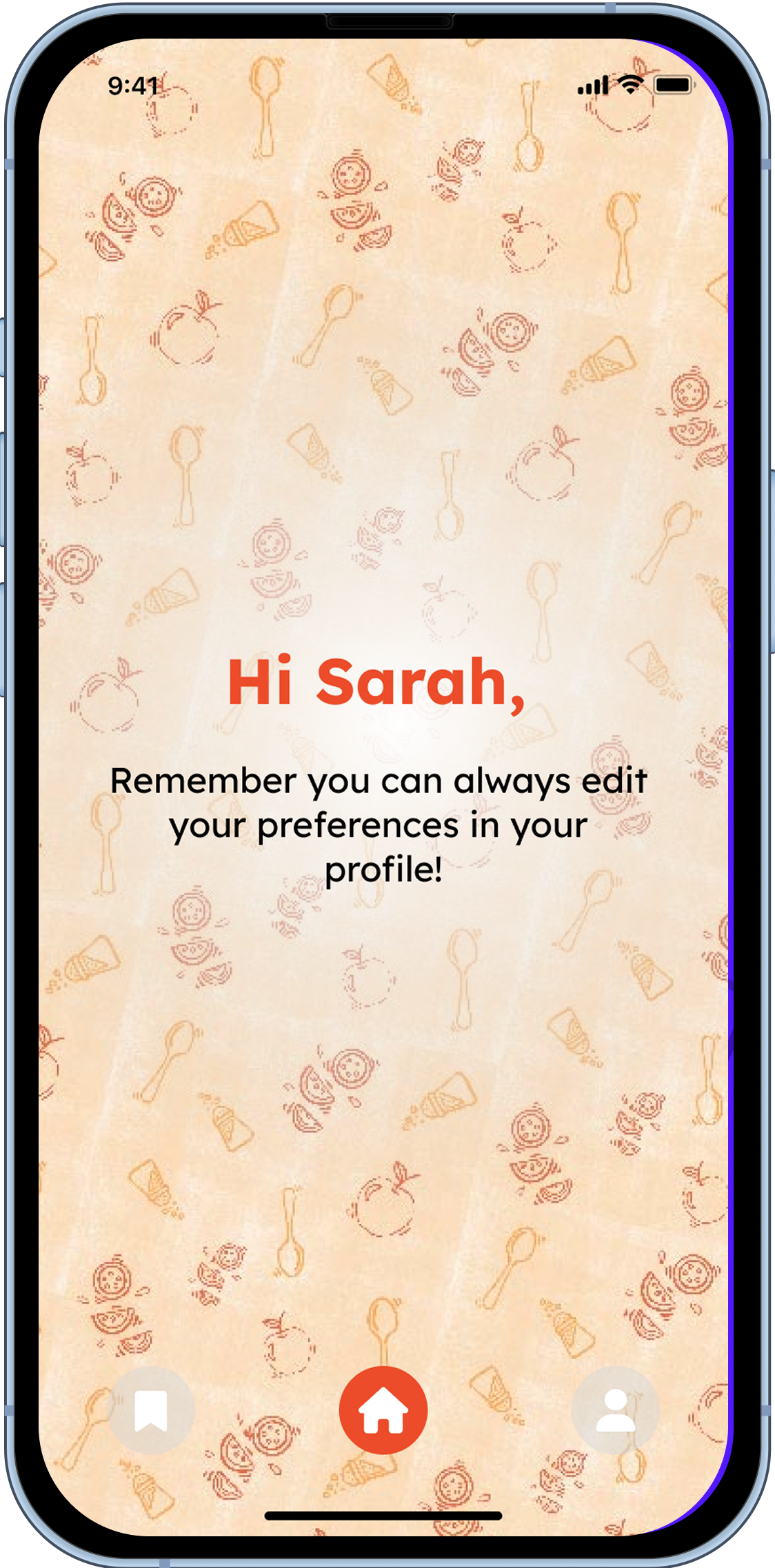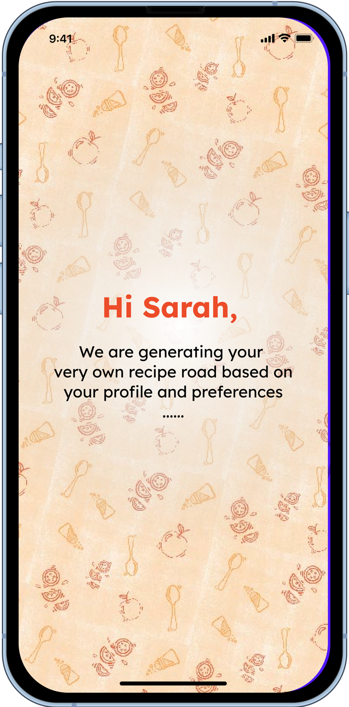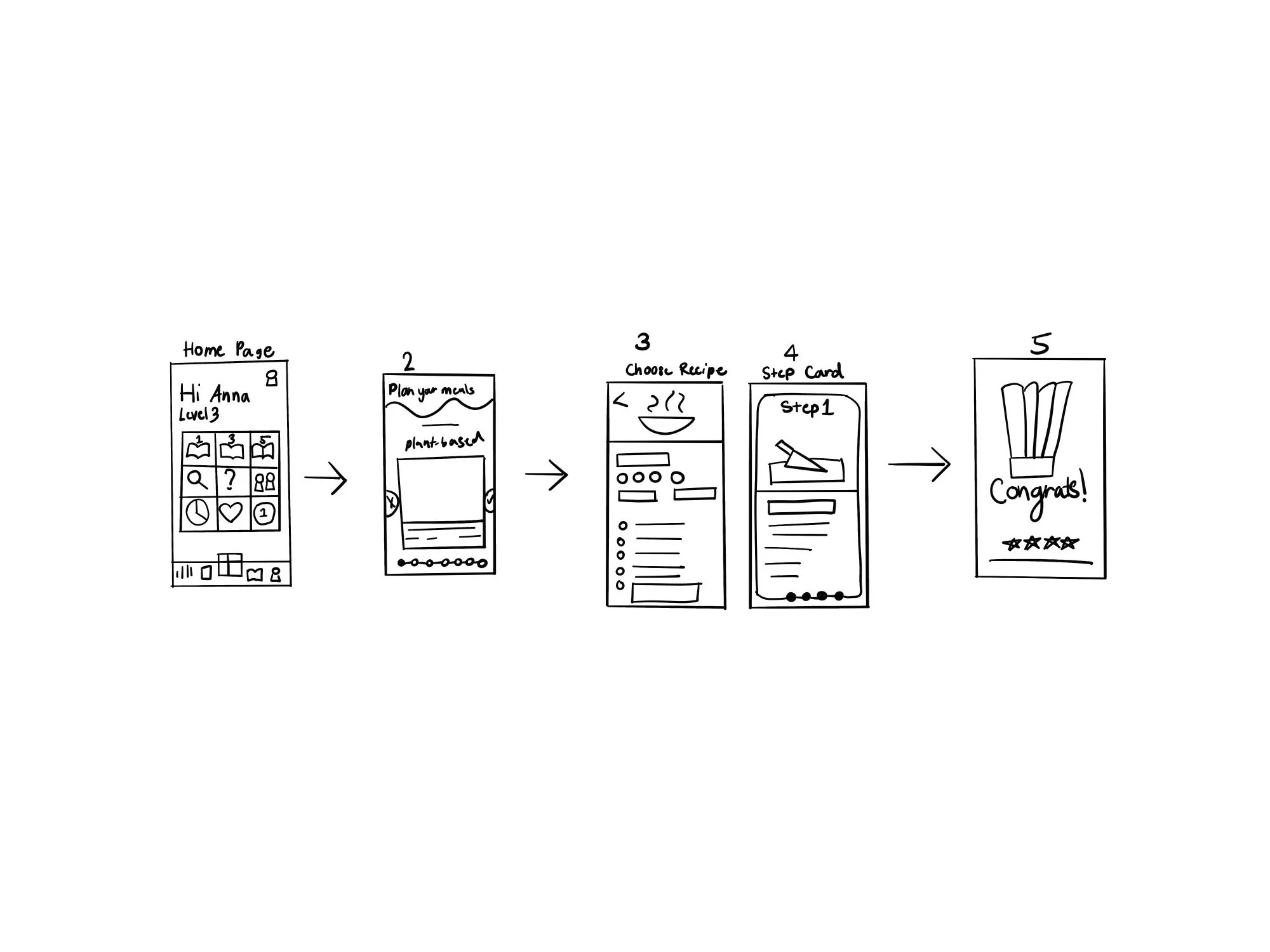 Onboarding , Home Page “Recipe Road” (Once AI has generated a “road” of recipes), Saved Recipes, Profile Settings