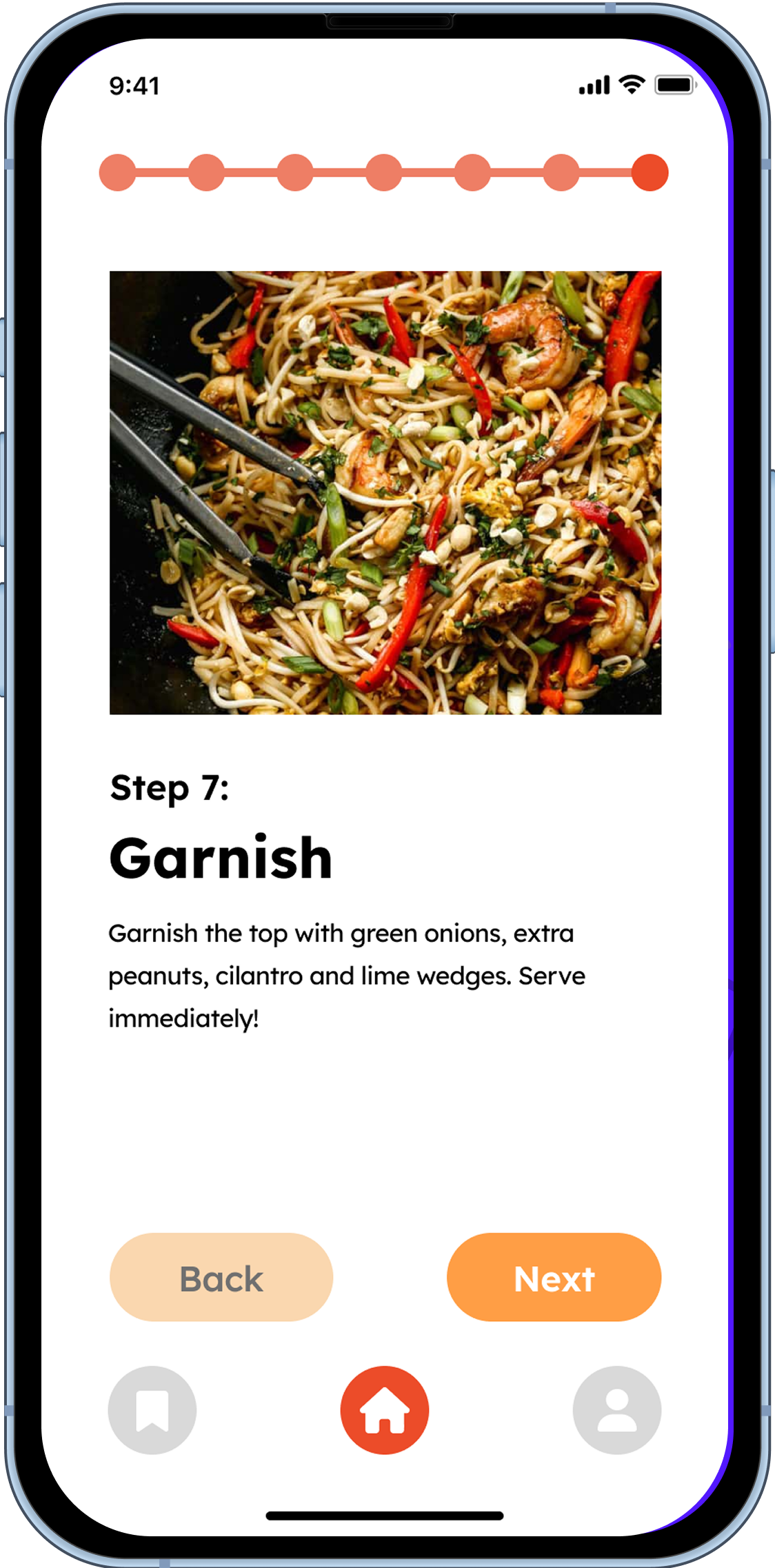 The recipe instructions that follow are broken into small, digestible chunks in the form of cards with a photo and description of each task