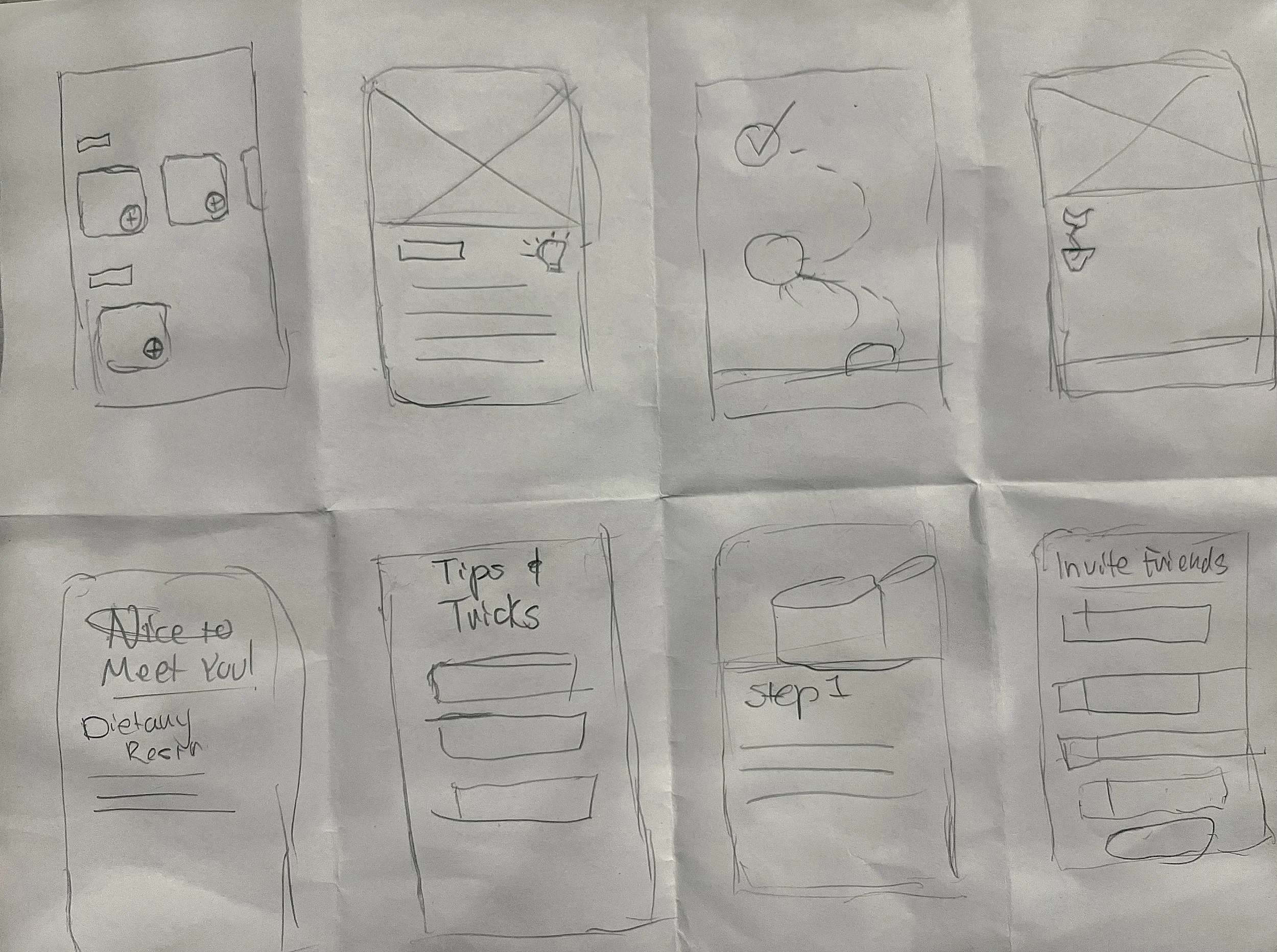 We individually sketched eight different page ideas within eight minutes and experimented with different layouts to find the best visual and informational hierarchy. We then discussed what we liked about each sketch to implement for our prototype.