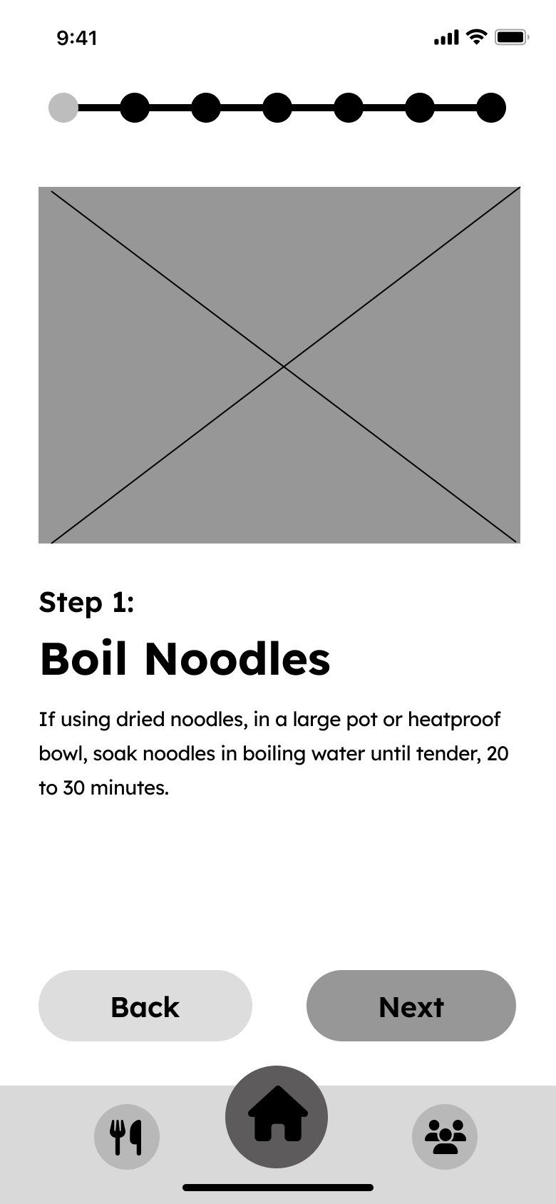 This information layout provides a fun and interactive experience, without overwhelming the user with understanding and performing the whole recipe at once
